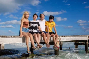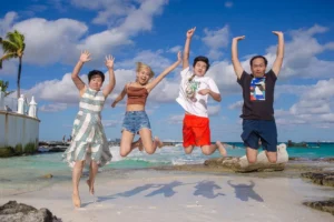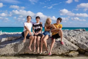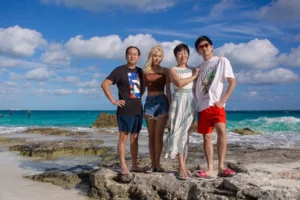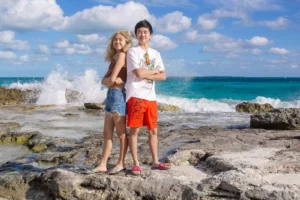 The Ding family, originally from China but now spread across different cities in the United States, finally came together for a long-awaited reunion in the breathtaking Mexican Caribbean. With parents, son, and daughter living miles apart, the vibrant shores of Cancun offered the perfect setting for their heartfelt gathering. To preserve these treasured moments, they entrusted me—a dedicated Cancun family photographer—to document their special time together.