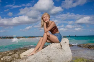 Their long-awaited reunion was filled with joy, laughter, and the warmth of togetherness, all set against the stunning backdrop of Cancun’s paradise. We scheduled our photoshoot for 4 PM, taking full advantage of the golden afternoon light that beautifully illuminated their smiles and emotions. The pristine white sands, the rhythmic waves of the turquoise sea, and the soft Caribbean breeze created an enchanting atmosphere, making every shot a true reflection of their love and connection.