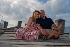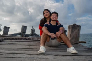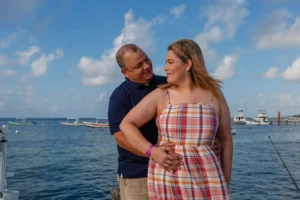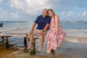 Our photo session began at the Puerto Morelos dock, where the family’s joy and excitement were palpable. We then moved to the pristine beaches, where the turquoise waters and golden sands provided a stunning backdrop for their photos. As the day progressed, we visited the iconic leaning lighthouse, a beloved symbol of Puerto Morelos, basking in the soft afternoon light.