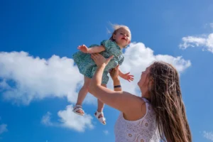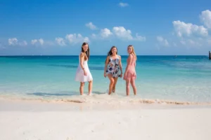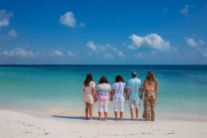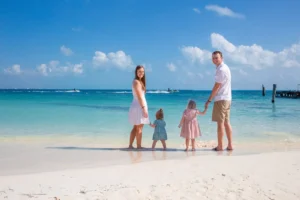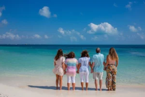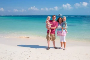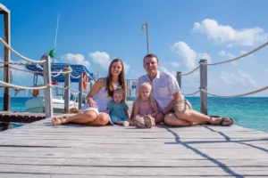 Our session unfolded at the stunning Riu Peninsula Hotel. The turquoise waters, resembling a pristine pool, provided a breathtaking backdrop for the photoshoot. The serene atmosphere perfectly complemented the family’s joy and togetherness as they reconnected after time apart.