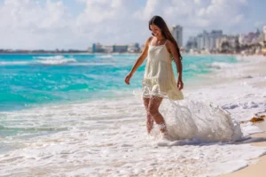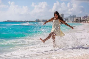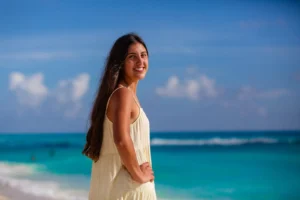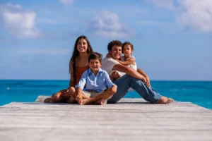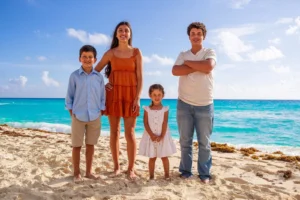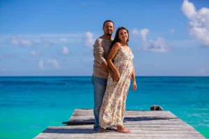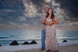 Playa Delfines and Playa Caracol, with their stunning landscapes of golden sands and turquoise waters, served as the perfect backdrops for the photoshoots. These picturesque locations beautifully complemented the joy and pride radiating from the Rodriguez family.