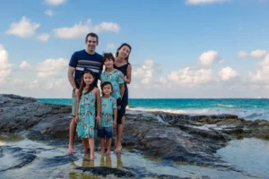The Smith family, visiting from the United States, arrived in Cancun with a thirst for adventure. Just before their departure, they decided to capture the essence of their trip with a last-minute photoshoot. Fortunately, a quick internet search led them to me, a Cancun family photographer, available to document their memories on Playa Caracol’s stunning shores.