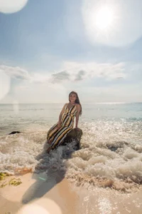 Xpuha’s pristine white sands and vibrant turquoise waters provided a picturesque backdrop for Valeria’s session. Each photograph not only showcases the captivating scenery but also reflects the joy and emotion of her time in this coastal paradise. The photographer skillfully captured Valeria’s genuine connection with the surroundings, creating images that tell a story of exploration and appreciation.