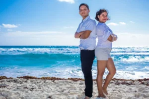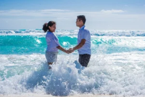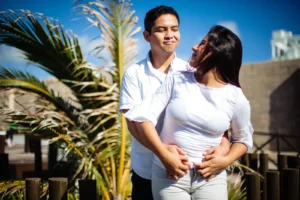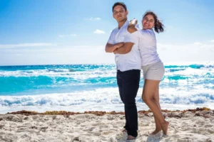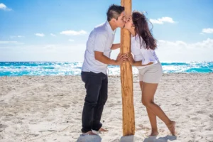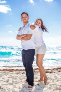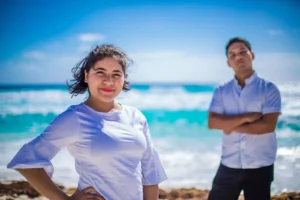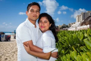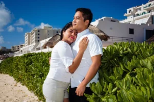 Recently, I had the pleasure of photographing Vanesa and Ronal at the breathtaking Marlin Beach in Cancún. Vanesa, a vibrant young woman originally from Tabasco, contacted me for a couples session, seeking to capture the essence of their relationship in a beautiful setting. Marlin Beach proved to be the perfect choice, its stunning scenery complementing Vanesa’s natural beauty under the bright Cancún sun.
