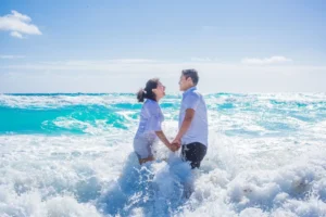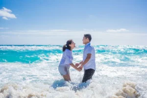As their photographer, I focused on documenting their genuine connection. The sun-drenched beach, with its golden sands and crystal-clear turquoise waters, provided a picturesque backdrop for their session. Vanesa and Ronal’s joy was palpable; their smiles and laughter infused each photograph with life and energy. Their playful interactions and evident affection translated beautifully into the images, showcasing the deep bond they share.