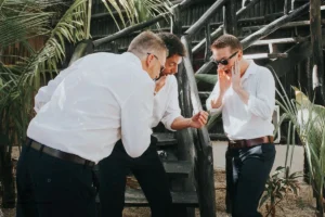 Yvette and Nick’s Riviera Maya wedding was a stunning celebration of love, set against the breathtaking backdrop of Tulum. The day began with the “getting ready” preparations at two distinct Tulum locations. Nick and his groomsmen gathered at the OM Hotel, sharing moments of camaraderie as they prepared for the momentous occasion. Meanwhile, Yvette and her bridesmaids enjoyed a serene and stylish getting ready experience at the Alaya Tulum Hotel.