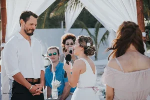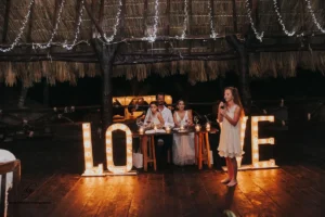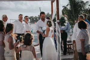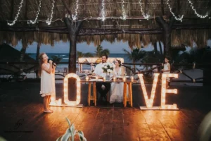 Following the heartfelt ceremony, the celebration continued with a vibrant reception at Akin Beach Club. The festivities lasted late into the night, with music, dancing, and joyful toasts echoing under the starry Riviera Maya sky. Yvette and Nick’s wedding was a perfect blend of relaxed Tulum vibes and elegant celebration, creating unforgettable memories for everyone in attendance. It was a true testament to their love and a beautiful start to their journey as husband and wife.