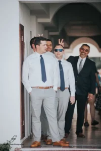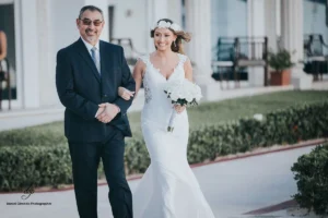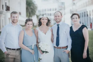 Following the heartfelt ceremony, the bridal party joined Kellie and Aaron for a vibrant photoshoot on the pristine beach. The turquoise waters and white sand provided a stunning contrast to the elegant attire of the wedding party. Laughter and joy filled the air as the photographer captured candid moments of celebration, preserving these precious memories forever. The images showcase the couple’s radiant happiness and the undeniable bond they share with their loved ones.