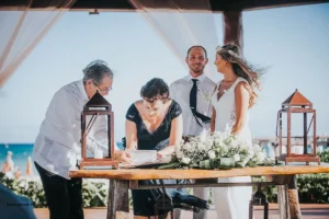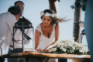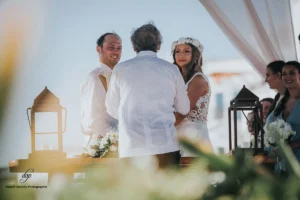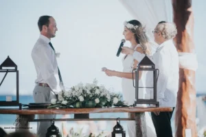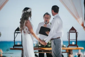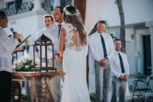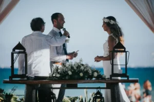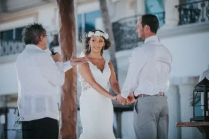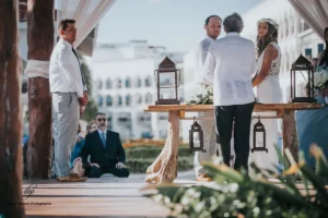The sun-kissed shores of Playa del Carmen provided the perfect backdrop for Kellie and Aaron’s enchanting wedding. The Royal Playa del Carmen played host to their intimate ceremony, held within a picturesque beach gazebo. The gentle sound of the waves and the warm Caribbean breeze created a romantic ambiance as the couple exchanged vows, surrounded by their closest family and friends.
